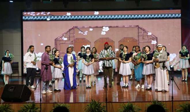 除“云上思政”外,现场还有京剧融合表演《京韵霓裳》、附校学子“四史”剧《觉醒的星火》、东华大学留学生与附校学子联合演唱《茉莉花》等,展演活动巧妙地将思政、科普、文创融会贯通,生动展现了大中小学思政教育一体化成效。