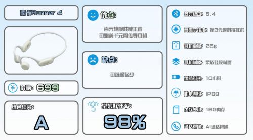 这款南卡Runner 4在佩戴舒适度、音质表现和防水性能上都有不错的表现,同时具备独立存储功能,适合运动、通勤甚至游泳使用。相比同价位产品,它的整体性能更具优势,如果预算有限但又追求高配置,这款耳机是不容错过的选择。