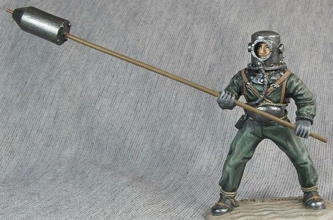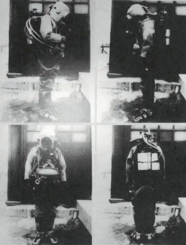 起初,由一些资深潜水员穿着潜水服下水试验,他们测试了潜水服的性能,以及水下爆炸水雷的威力。