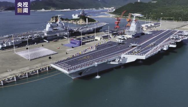 福建舰入列后,按照“一艘航母处于维护状态,一艘航母进行战斗训练,一艘航母处于战备执勤状态”的原则,中国海军获得了“随时有至少一艘航母可以出动”的能力。必要时,中国海军还可以在远海组成三航母编队,执行海上防御作战任务。由于航母上搭载的舰载战斗机性能先进、作战能力强,三航母编队未来可以在远海形成更广泛的制空制海作战范围,使中国海军在远海对海域的控制由间断性、临时性的控制发展为持续性控制。