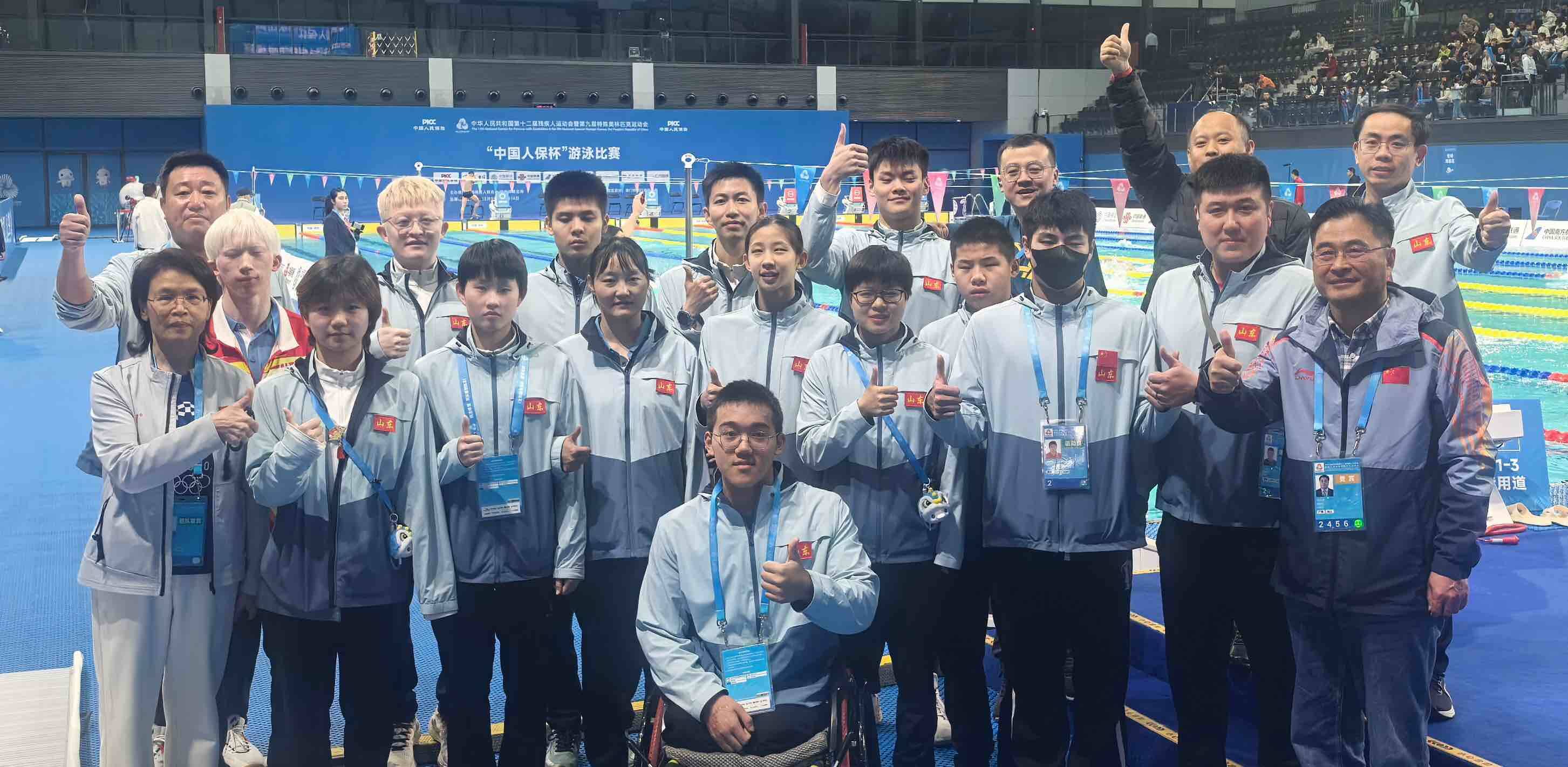 在广州举行的第十二届全国残疾人运动会暨第九届特殊奥林匹克运动会游泳项目比赛中,山东省残疾人游泳代表队奋勇争先,表现突出,共获得25枚金牌、13枚银牌、14枚铜牌,总计52枚奖牌,并刷新多项全国纪录。