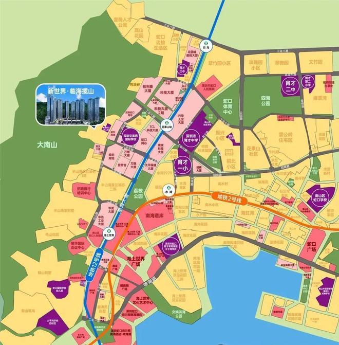 学校配套:新世界临海揽山幼儿园、育才一小、育才二中、深圳贝赛思国际学校、深圳蛇口国际学校、太子湾国际学校、韩国国际学校、深美国际学校等众多国际学校。