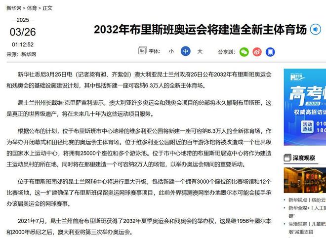 遴选逻辑全面重构:优先评估现有场馆利用率、公众民意基础、地方财政可持续性。布里斯班正是在此新框架下,被精准识别为“低风险、高适配”的理想标的。