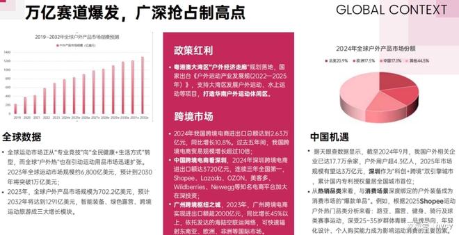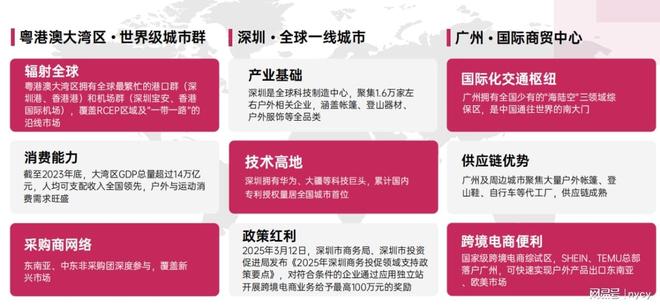 KaiyunCOSP2026中国户外展立足粤港澳大湾区为核心,以“破界+跨境”双引擎重构户外与运动产业生态。展会涵盖露营生活、高尔夫运动、自行车运动、水上运动、体育健身等多项热门运动与户外休闲活动,深度融合大湾区战略资源,聚合户外装备制造、智能运动穿戴、绿色露营生态、跨境出海服务等特色版块内容,打造从技术研发到产业分销的一站式行业信息分享平台,为推动企业品牌出海提供资源网络与专业背书,为各渠道专业观众打造各类爆品货源一站式采购平台。同时也为户外玩家、运动爱好者打造一场城市里的“趣野乌托邦”,解锁新潮有趣的户外玩法,带来丰富趣味的精彩活动和舒适惬意的美好体验。