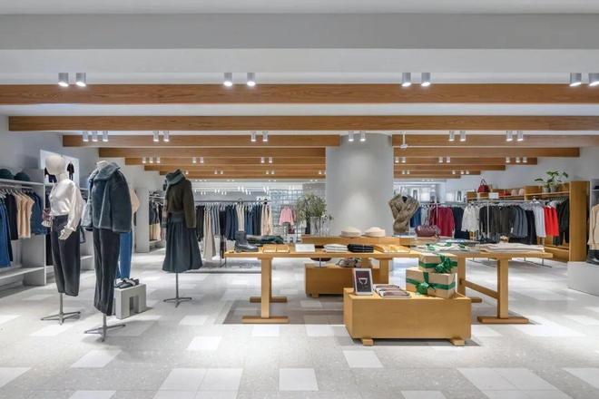 该旗舰店占地近500平方米,以柔和灰色系和天然材质为主,搭配定制水磨石地面、橡木内饰及绿植,营造出简约舒适的购物空间。此次,ARKET与独立设计师周宸宸合作,推出Rectangle系列家具,将中国设计的传统与现代完美融合,为店铺增添优雅气息。