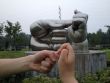 2.翻脚:两脚距离大于两膝距离,两脚外翻,脚尖朝外,脚牚朝天,小腿和脚内侧对准水,像英文字母“W”。