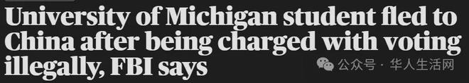 邦调查局(FBI)日前公布的一份刑事起诉书披露,一名就读于密歇根大学的中国留学生高浩翔(Haoxiang Gao,译音)因在2024年美国大选中非法投票而遭起诉,目前已逃回中国。案件经法庭文件于5月30日解封后引发广泛关注。