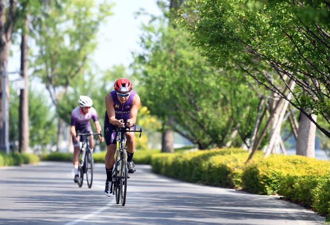 据介绍,赛事主会场设于青浦大观园花神广场,核心赛道设计贯穿 跨界一体、绿色共生 理念。在游泳环节,选手将在横跨上海与江苏的元荡湖劈波斩浪,这片经过生态修复的 长三角生态标杆湖泊 水清岸绿,选手可近距离观赏沪苏湖高铁现代轮廓与古意亭台倒影交织的独特景观。
