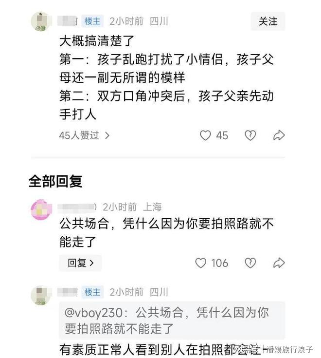 截至目前,这件事仍在网上不断发酵,拍照情侣和一家三口,都有站边的网友,各执一词互不相让,也都有自己的立场和道理,我们在此不多赘述。